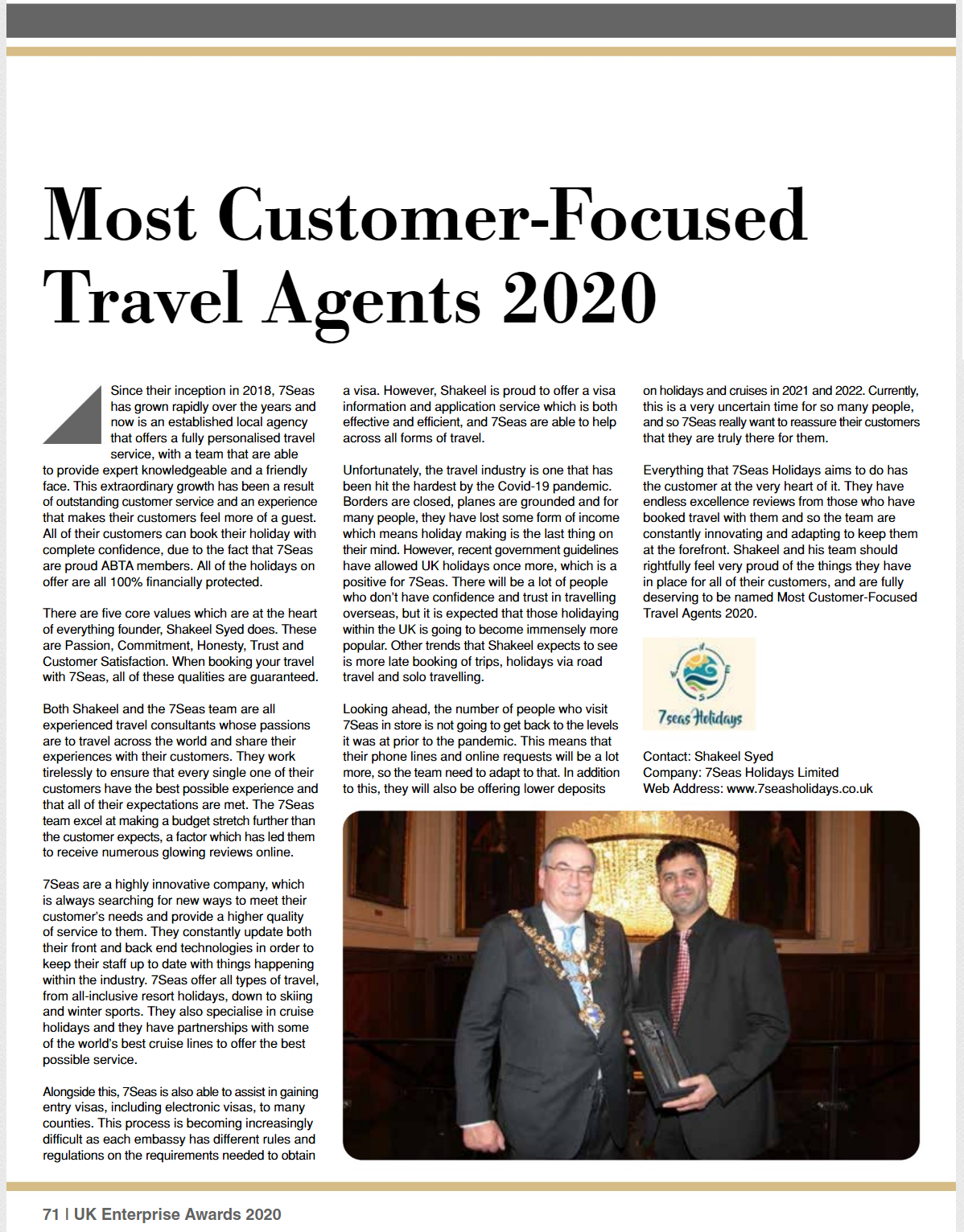 7 Seas Holidays is proud to have been recognised as one of London’s leading independent travel agencies. Over the past few years we’ve received a number of industry awards, which reflect the hard work and dedication of our team and the trust our customers place in us.